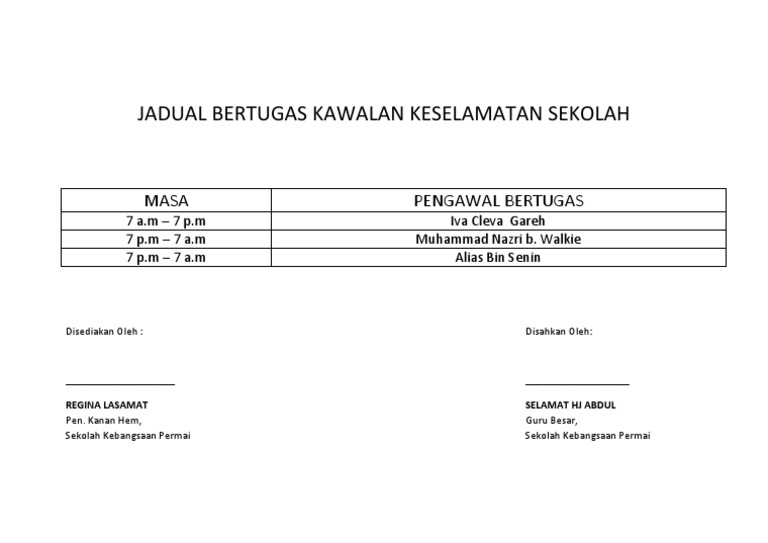 Jadual Bertugas Pengawal Keselamatan Pdf